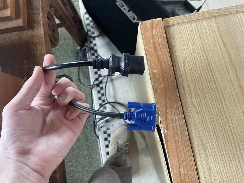 - Plugin the VGA cable to either Computer1 or Computer2, and plug in the power cable.