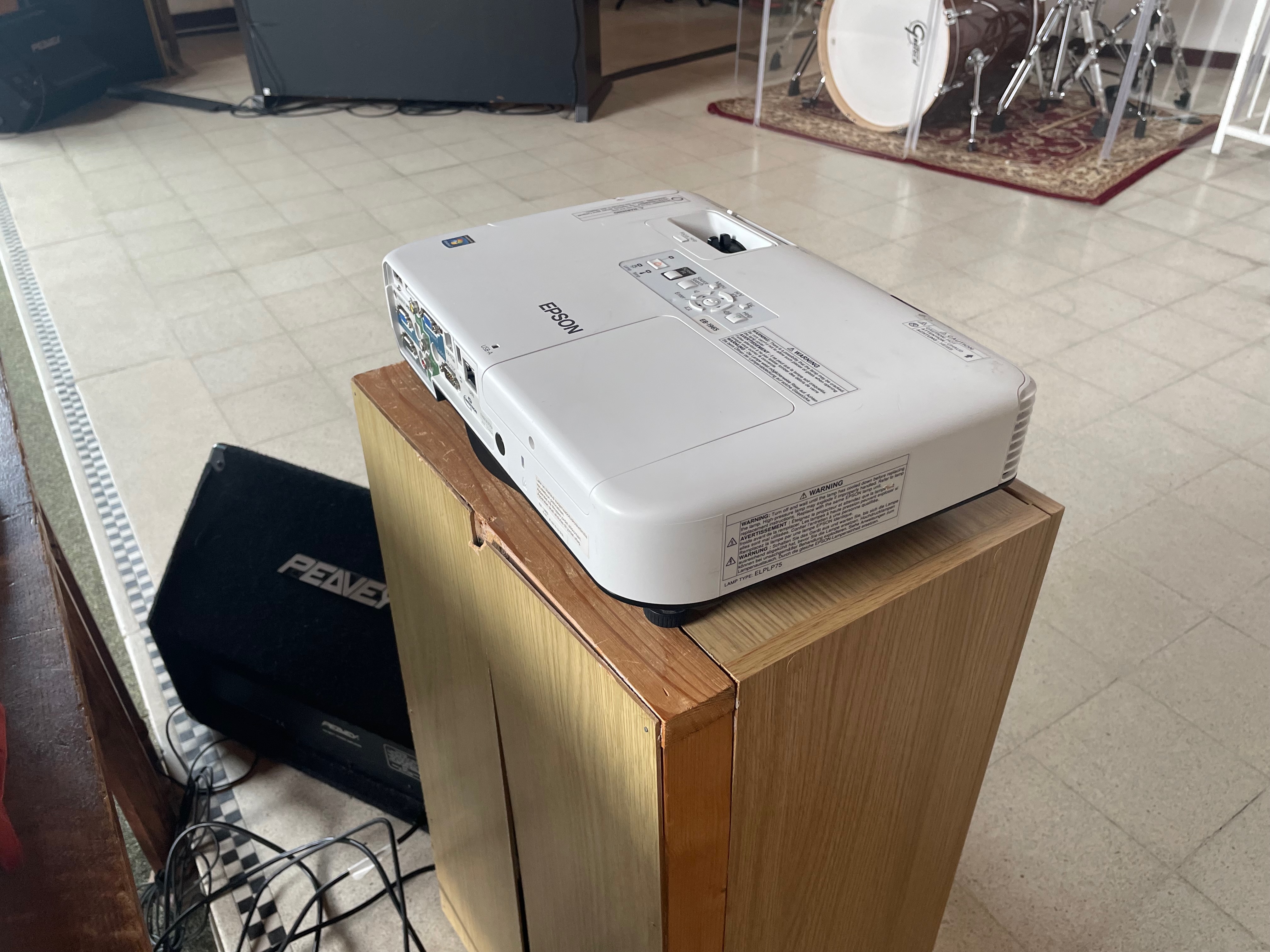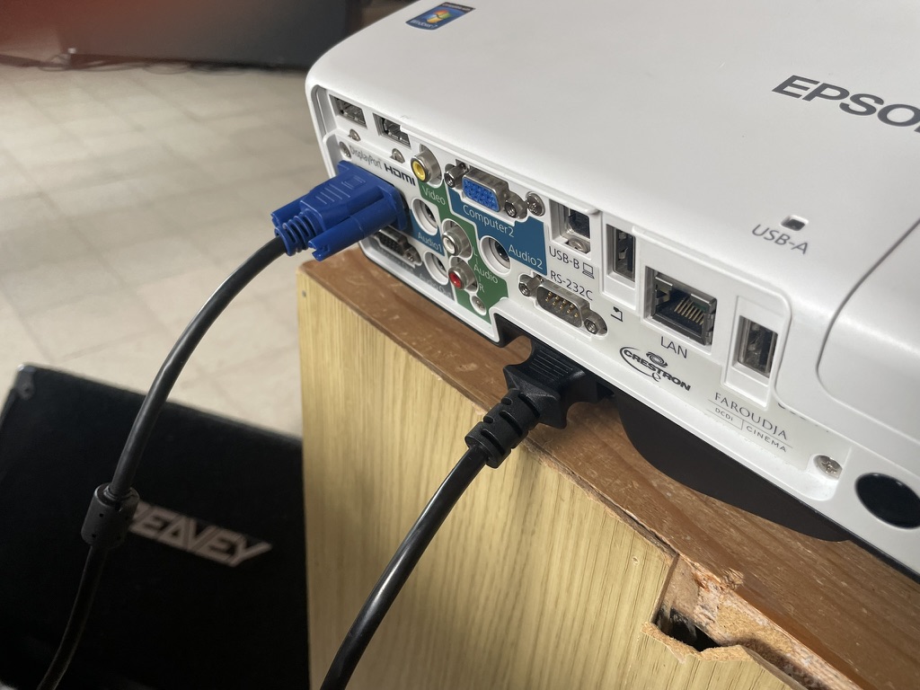 - Press the power button on the projector to turn it on and wait for it to warm up.