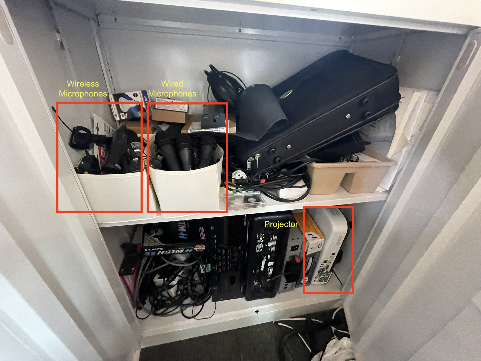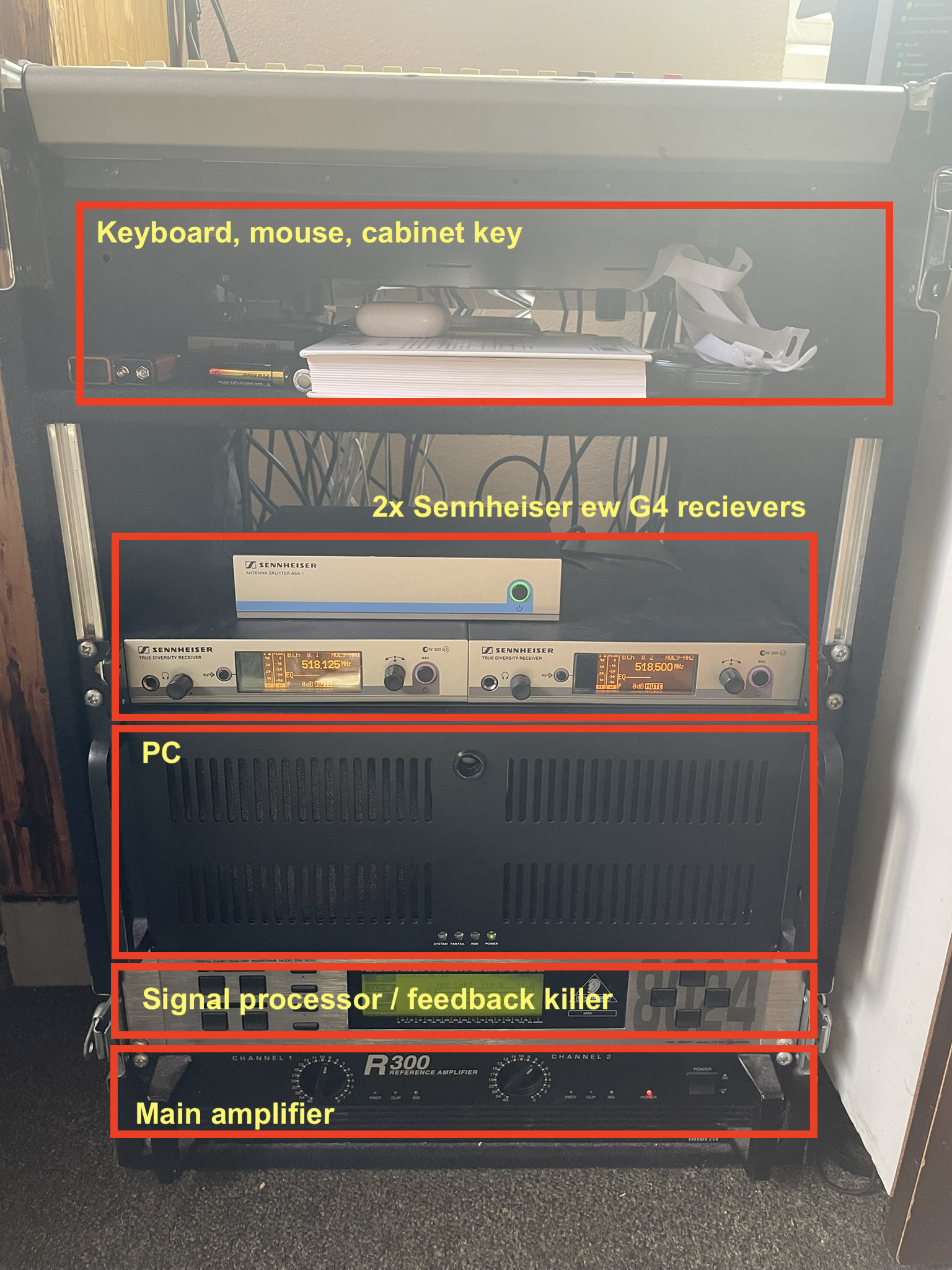 image needed Open the clover, then firmly press the switch in and release to turn on the PC. Take the mouse and keyboard out from the flight case and switch them on. The switch for the mouse is located on the bottom.