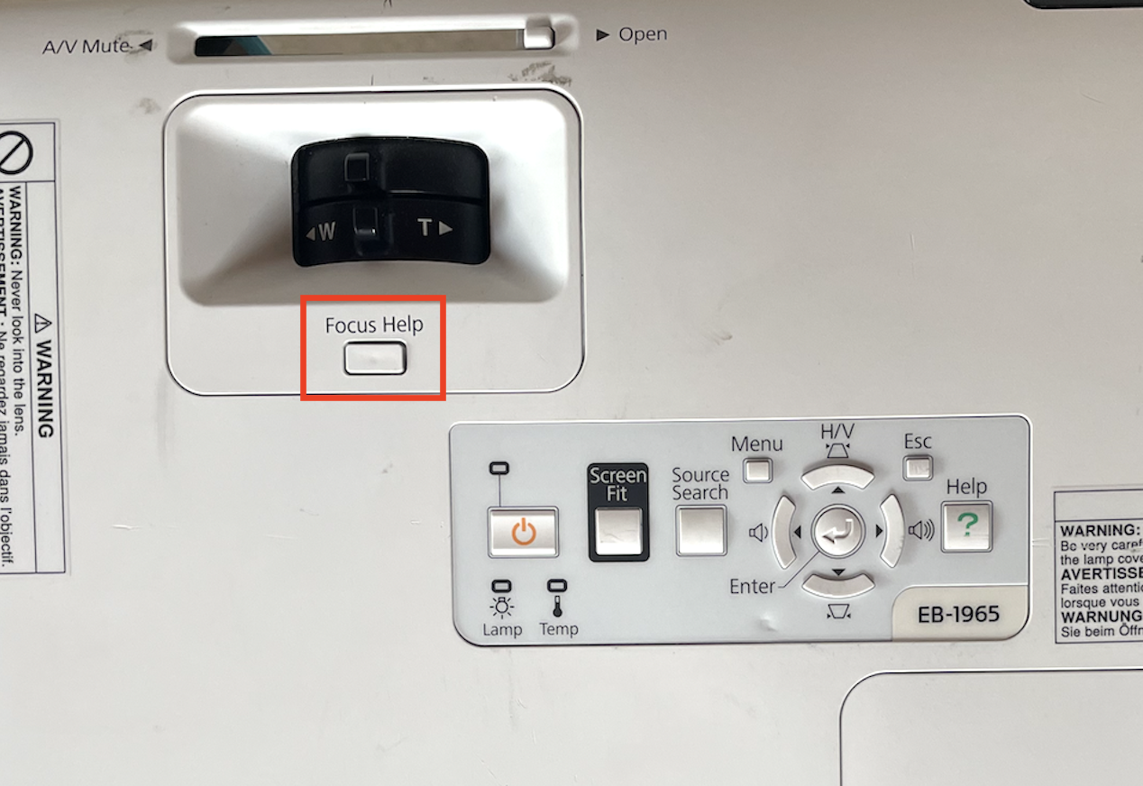 - Use the ‘Focus Help’ button on the projector to ensure it is aligned, and the image is not distorted. Press ‘Focus Help’ again to restore the image.